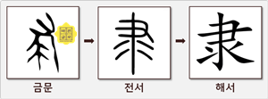 : 오른손으로 짐승의 꼬리를 잡은 모습을 나타낸 글자. 이것은 짐승을 뒤쫓아 붙잡았다는 뜻을 표현한 것입니다. '隶' 자는 그러한 의미에서 '미치다'나 '닿다'라는 뜻을 가지게 되었습니다.
