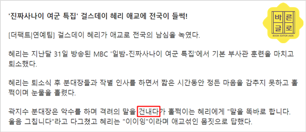 첫 번째 자료에는 '말을 건내다', 두 번째 자료에는 '말을 건네다'로 적혀 있습니다. 어떤 것이 바른 표현일까요?