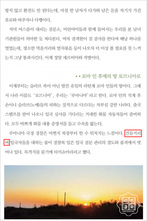 첫 번째 자료에는 '건덜거리며', 두 번째 자료에는 '건들거리며'로 적혀 있습니다. 어떤 말이 바를까요?