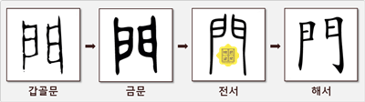 '門' 자의 형태는 아래와 같은 과정을 거쳐 변하였습니다.