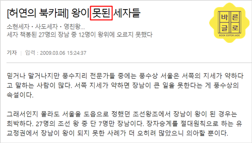 첫 번째 자료에는 '왕이 못 된 세자들', 두 번째 자료에는 '왕이 못된 세자들'로 적혀 있습니다. 같은 책 제목인데, '못 된'과 '못된'으로 표기가 다르네요.