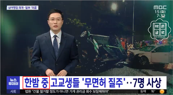 그리고 세 번째 자료에는 '한밤 중', 네 번째 자료에는 '한밤중'이라고 적혀 있습니다. 위에서 의존 명사 '중'은 앞의 말과 띄어 써야 한다고 했으니까, 세 번째 자료의 '한밤 중'처럼 써야 바르겠죠.