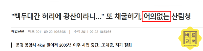 첫 번째 자료에는 '어의없는', 두 번째 자료에는 '어이없는'으로 적혀 있습니다. 어느 것이 바를까요?