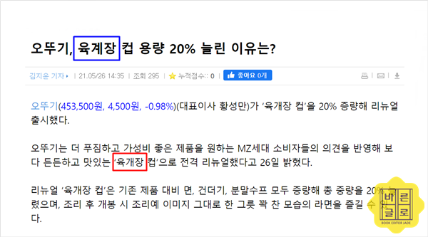 기사 본문에는 '육개장', 기사 제목에는 '육계장'으로 적혀 있습니다. 어떤 표기가 바를까요?