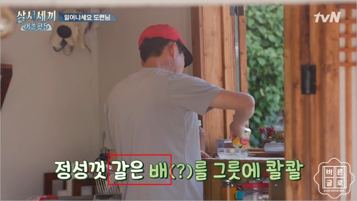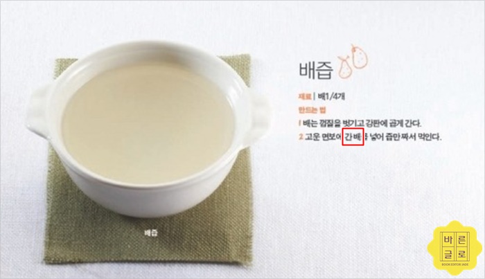 첫 번째 자료에는 '간 배', 두 번째 자료에는 '갈은 배'로 적혀 있습니다. 바르게 쓴 것은 무엇일까요?