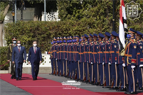 올해 1월에 이집트를 공식 방문한 대통령은 카이로의 대통령궁 정원에서 열린 공식 환영식으로 이집트 일정을 시작했습니다.