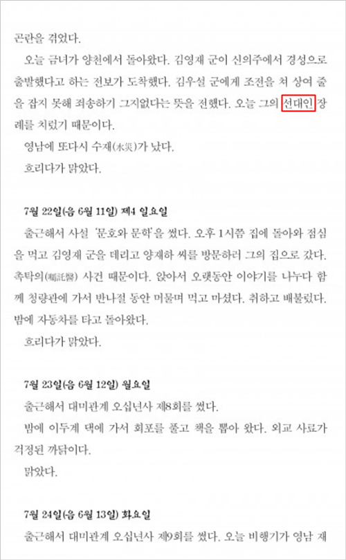 바로 앞 글에서는 '가친(家親)'과 '춘부장(椿府丈)'에 관해서 알아보았는데요. 오늘 살펴볼 단어는 '선친(先親)'과 '선대인(先大人)'입니다. 이 역시 생소하시죠? 준비한 자료부터 먼저 보겠습니다.