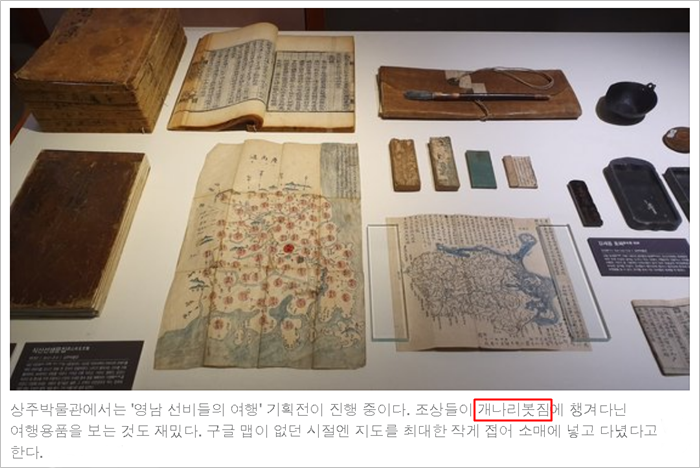『두피디아』에 따르면, 과거(科擧)를 보러 가는 선비의 괴나리봇짐에는 종이 · 먹 · 붓 · 벼루 등은 물론이고 여벌 옷과 용돈 등도 들어 있었으며, 위의 사진처럼 짚신 몇 켤레를 괴나리봇짐의 끈에 매달고 등에 지었다고 하니, 한양까지 가는 그 여정이 얼마나 힘들었을지 가늠하기도 어렵습니다.